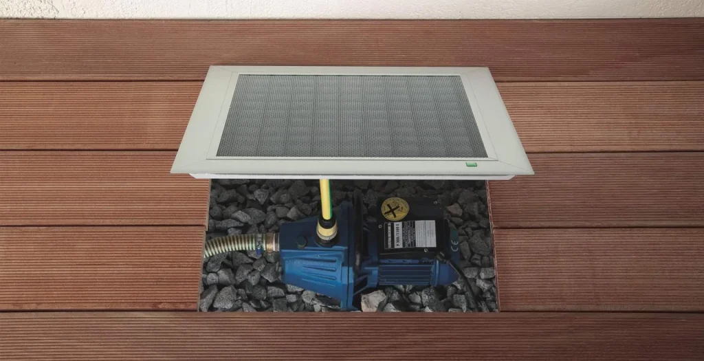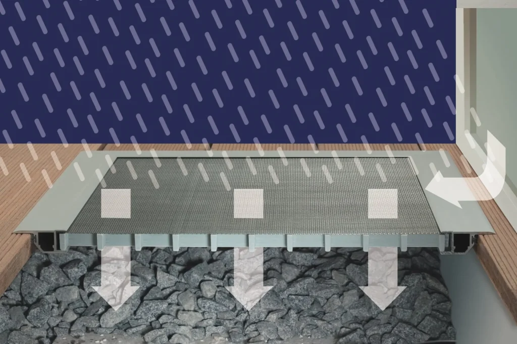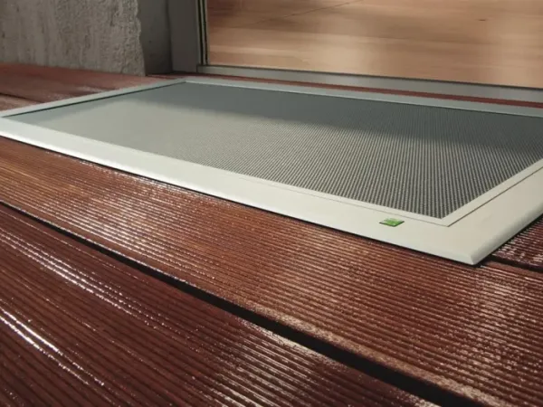 Einsatz auf Holzterrassen als Wasserablauf, Rutschhemmung oder Revisionsöffnung.
